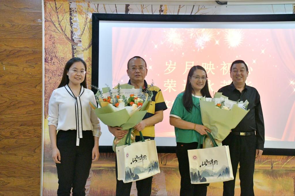 仪式最后,学院领导向两位荣退老师献花、赠送礼品并合影留恋。
