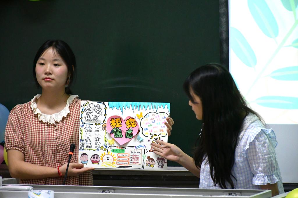 主持人介绍本次活动主题并热烈欢迎出席大会的各位领导老师及参与的同学。参赛选手们依次上台讲解手抄报,他们生动详细的讲解了自己的作品,对手抄报版面以及文字、图画、手工等进行详细介绍,表达自己对心理健康的理解和感悟。本次大赛作品主题丰富,有“向阳而生”、“了解抑郁”、“拒绝焦虑”、“快乐交友”、“悦纳自己”等。最后,汪书记用共产党红军在长征时期湘江战役时虽遇挫折却仍积极乐观、坚定信念和毛主席在面对复杂严峻的国内外形势时仍积极向上的例子来呼吁大家要以积极乐观的心态对待学习生活,及时调整负面情绪,寻求解决办法,为建设阳光健康美丽的校园而努力。至此,本次活动圆满结束。