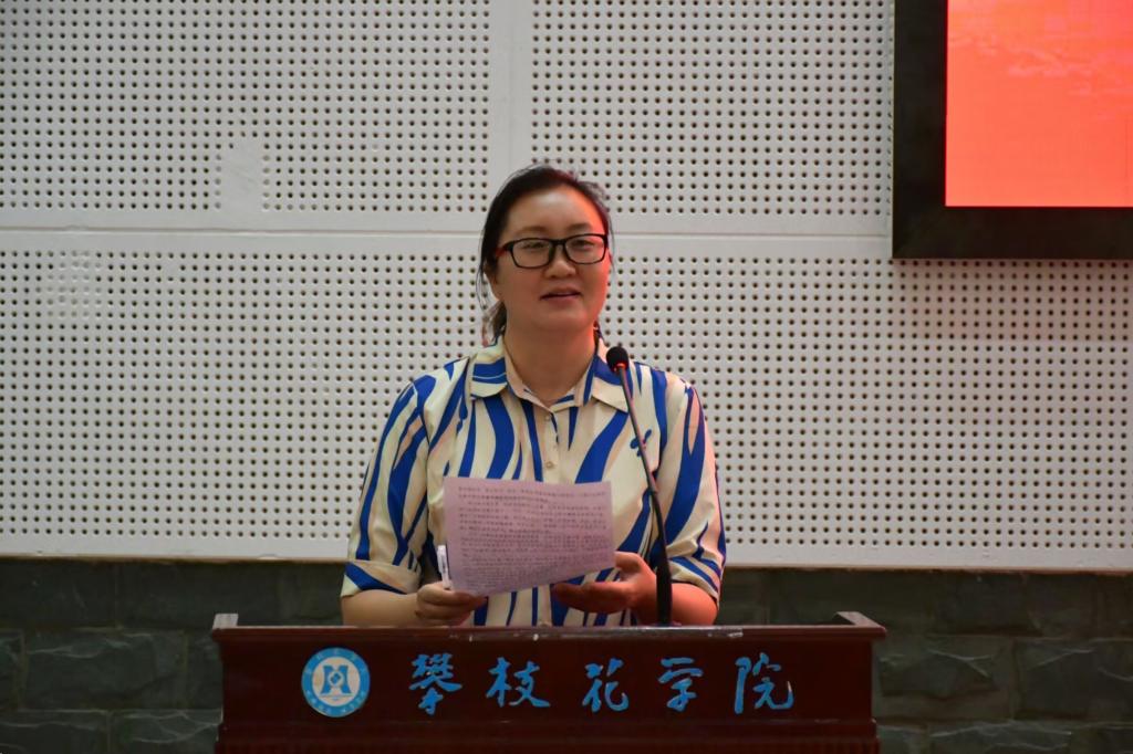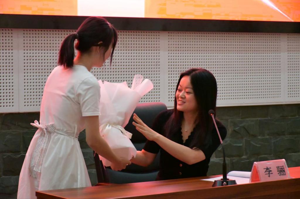 大会伊始,王春梅向同学们详细介绍李骊的先进事迹和突出贡献,大家以热烈的掌声欢迎李骊的到来。随后,李骊进行简单的自我介绍,并向大家分享自己在创作道路上的难忘经历,表示自己在为攀枝花的舞台艺术增光添彩的同时,也收获了宝贵的成长经历,增强了个人能力。她强调在以后的文艺创作生涯中,将继续坚持以人民为中心的创作导向,致力于讲好人民与时代的故事,与时代同频共振。李骊还讲述了自己与攀枝花这座城市妙不可言的缘分和对暖暖花城独特的情怀。倾情讲述中,同学为她献上鲜花。