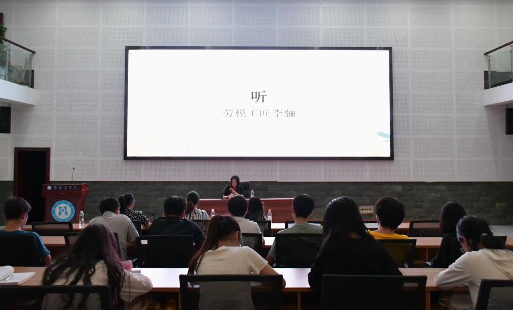 为学习“劳模工匠”个人先进事迹,弘扬劳模精神,激励学生砥砺前行,为发展繁荣文化事业贡献力量。文学院于2024年4月18日晚上19:00在学术报告厅开展“劳模工匠进校园”宣传报告会。本次活动由张致汶主持,劳模工匠李骊老师主讲,文学院党总支副书记王春梅、23级辅导员冷虹出席,文学院部分学生参加。