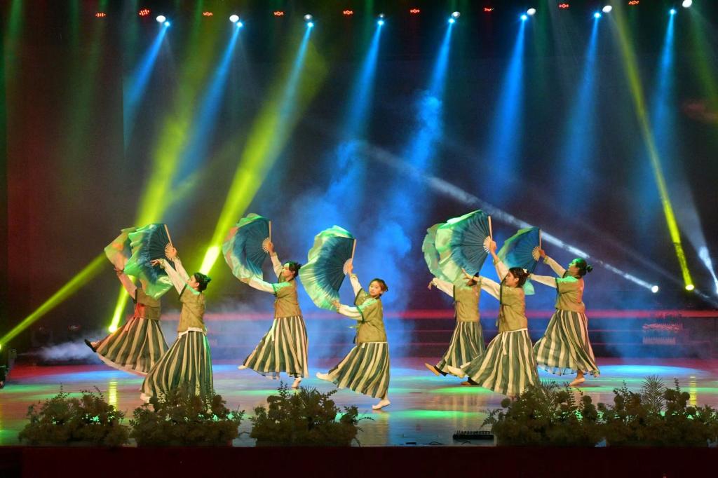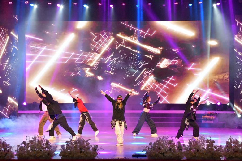 万众瞩目下,各节目依次亮相舞台。温馨柔美的舞蹈《灯火里的中国》、水墨丹青的古风舞《九州同》、美轮美奂的民族舞《彩云追月》,姑娘们时而抬腕低眉,时而轻舒云手,身影曼妙;《不可思议》与《别无选择》中舞者们旋转飞舞、热情奔放,青春肆意 ;走秀《盛世霓裳》以历史为脉络,演绎中华服饰演变,用自信的步伐,带来一场视觉盛宴;《诗词歌赋里的中国》朗诵让我们感悟经典文字魅力;《军师恋盟》话剧趣味盎然,剧情跌宕起伏,演员精湛的表演也引得观众们开怀大笑,掌声不断;乐器合奏《踏山河》旋律婉转悠扬,尽显音乐之美;情景剧《如愿》重回风雨岁月,演绎奋斗历程,让人动容,使人震撼。