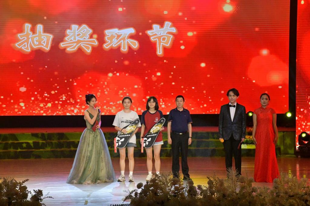 各节目篇章间穿插有弹幕抽奖和抽奖环节,曹利华、汪大喹、王春梅上台为同学们颁奖并送出祝福,同学们积极参与活动,现场气氛热烈。台下观众们热情似火,笑声连连,用力挥舞着手中的荧光棒。有趣新颖、类型多样的晚会节目为文学院师生上演了一场视觉盛宴,展示了攀大学子的多才多艺。最后,晚会在大合唱《昨日青空》的温馨氛围和师生们的感动、祝福、不舍中谢幕。