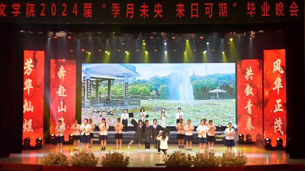 花落未觉春已去,蝉鸣方知夏已至。为表达全院师生对毕业生的美好祝愿,激励他们自信乐观地奔赴远方,6月2日晚,文学院于会堂举办“季月未央·来日可期”2024届毕业晚会。本次晚会由李菲、张致汶、魏艺佳、游清超、陆欣月主持,文学院院长曹利华、党总支副书记汪大喹、党总支副书记王春梅、分团委书记张杰及文学院部分师生参与。