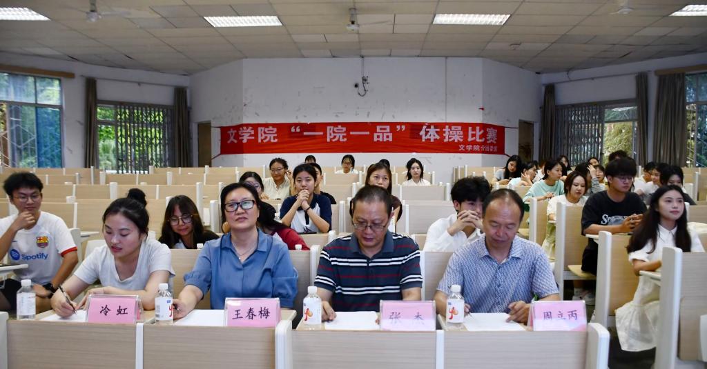 为客观评价学生的体操技能和水平,激发同学们的运动积极性,增强班级团结合作意识,文学院于6月18日19:40在1—2开展“一院一品”体操比赛活动。此次活动由张英琦主持,文学院党总支副书记王春梅、分团委书记张杰、2022级辅导员周立丙、2023级辅导员冷虹以及各班学生代表参加。