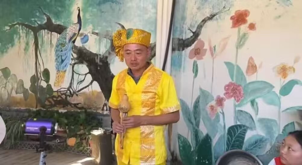 郑主任向实践团深度解读红岩村傣族文化的丰富内涵。讲解过程中,郑主任从红岩村历史沿革、行政区域变迁切入,系统阐述傣族文化特质与民俗传承脉络,内容涵盖饮食特色、语言体系、宗教信仰、建筑风格,以及民族融合进程中的通婚情况等多个维度。针对当前傣族文化面临的传承困境与发展瓶颈,郑主任也进行了全面分析。为让实践团成员获得更直观的文化体验,郑主任身着傣族传统服饰,现场演奏葫芦丝,悠扬乐声生动展现了傣族传统艺术的独特魅力。