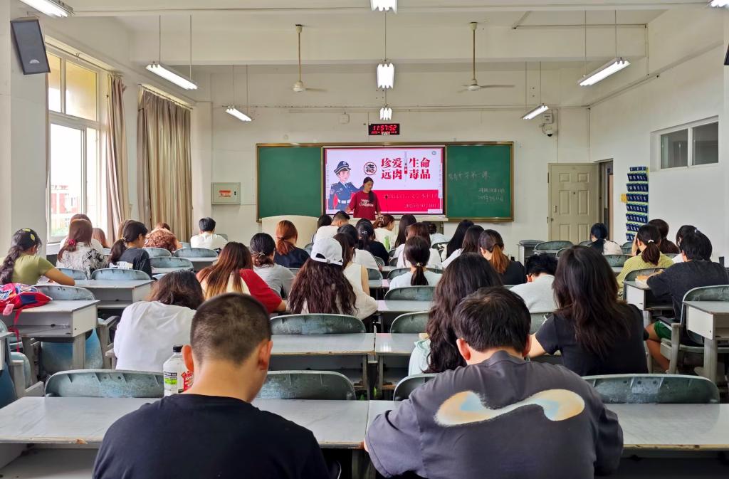 活动伊始,主持人从传统毒品和新型毒品两个角度引入主题,系统介绍毒品的种类与特征。同时,结合国内吸毒的相关真实案例,详细讲述了毒品对个人的身体健康,给家庭和社会带来的不同危害,以此告诫同学们远离毒品。