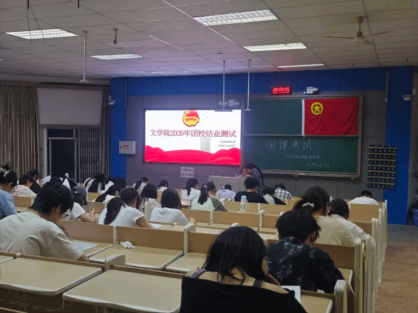 为严格规范团员发展流程,夯实入团积极分子思想理论基础,文学院于4月10日晚在本部1-116教室举行2025级共青团团校培训结业考试。本次考试由分团委组织部统筹组织,全体入团积极分子参加考试,标志着为期一学年的团校培训工作圆满收官。