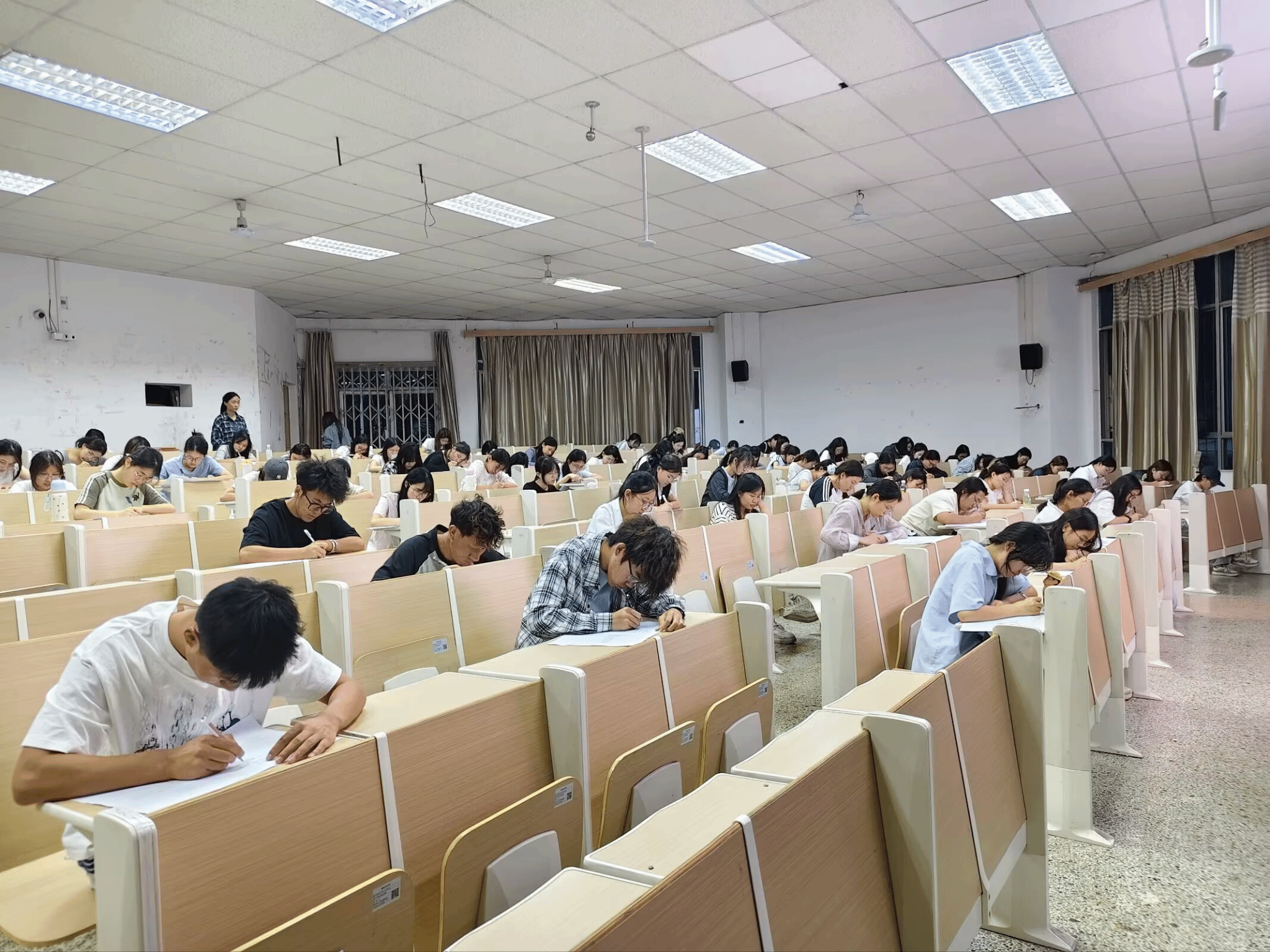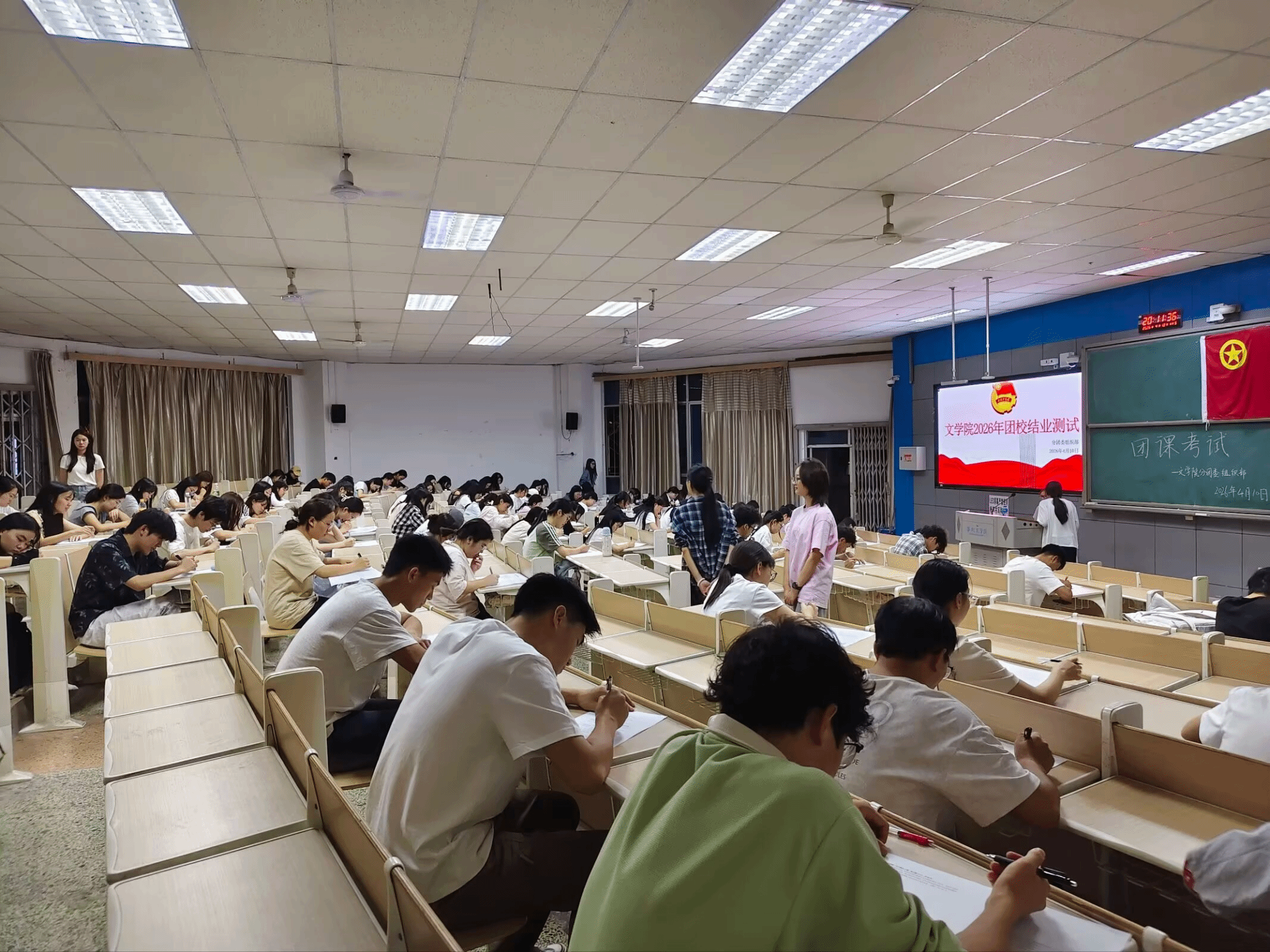 考试现场秩序井然、氛围严肃庄重。学员们严格遵守考场纪律,认真审题、沉着作答,以严谨认真的态度完成答卷,笔尖流转间尽显对团的赤诚与向组织靠拢的坚定决心,充分展现了文学院青年学子昂扬向上的精神风貌。