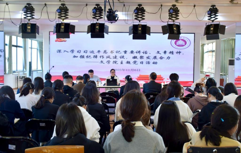 11月6日,文学院师生党支部以“深入学习习近平总书记重要讲话、文章精神,加强纪律作风建设,凝聚发展合力”为主题,联合开展主题党日活动,全体师生党员齐聚一堂接受思想淬炼与纪律洗礼。