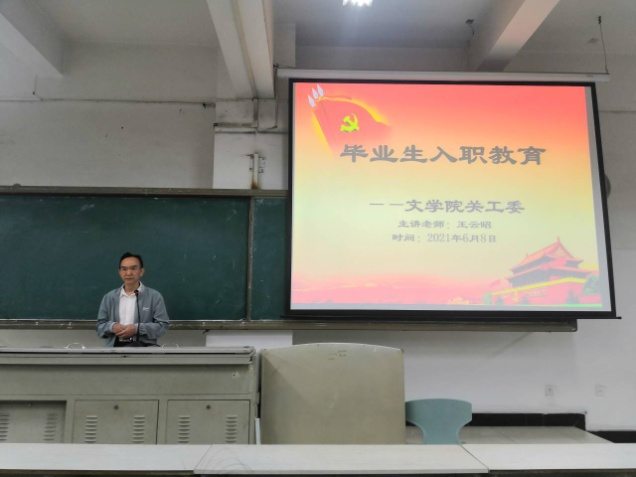 6月8日下午,文学院在2-101教室开展了2021届毕业生入职教育讲座。本次讲座邀请了学院关工委王云昭老师为主讲人,为同学们在就业选择和职场发展等方面的问题给予了指导和帮助。