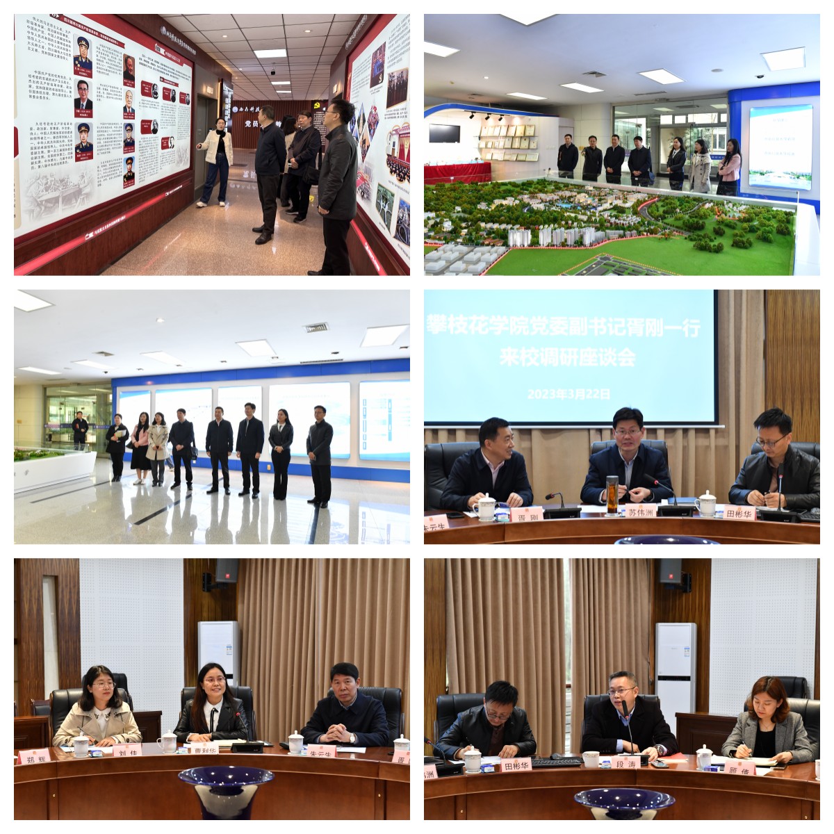 在交流过程中参观了文学与艺术学院实验室、马克思主义在四川的传播与实践教育基地、校情展示馆,最后在办公楼副楼203会议室进行交流,文学与艺术学院党委书记田彬华主持会议,党委常委、副校长苏伟洲等领导参加会议。会议就以工为主的综合性大学如何高质量建设文科类专业展开深度交流。学科建设处处长、党委研究生工作部部长段涛,党委宣传部副部长顾倩,文学与艺术学院党委书记田彬华、教授委员会主任郑剑平等从数字化背景下汉语言文学等传统专业适应调整的做法、新文科建设举措、人才培养定位及成效、高水平科研成果培育4个方面做了经验交流。胥刚代表攀枝花学院做总结讲话,对西南科技大学的倾囊相授深表感谢,希望两校在人才培养、学科建设、科技攻关等方面进一步加强交流合作。