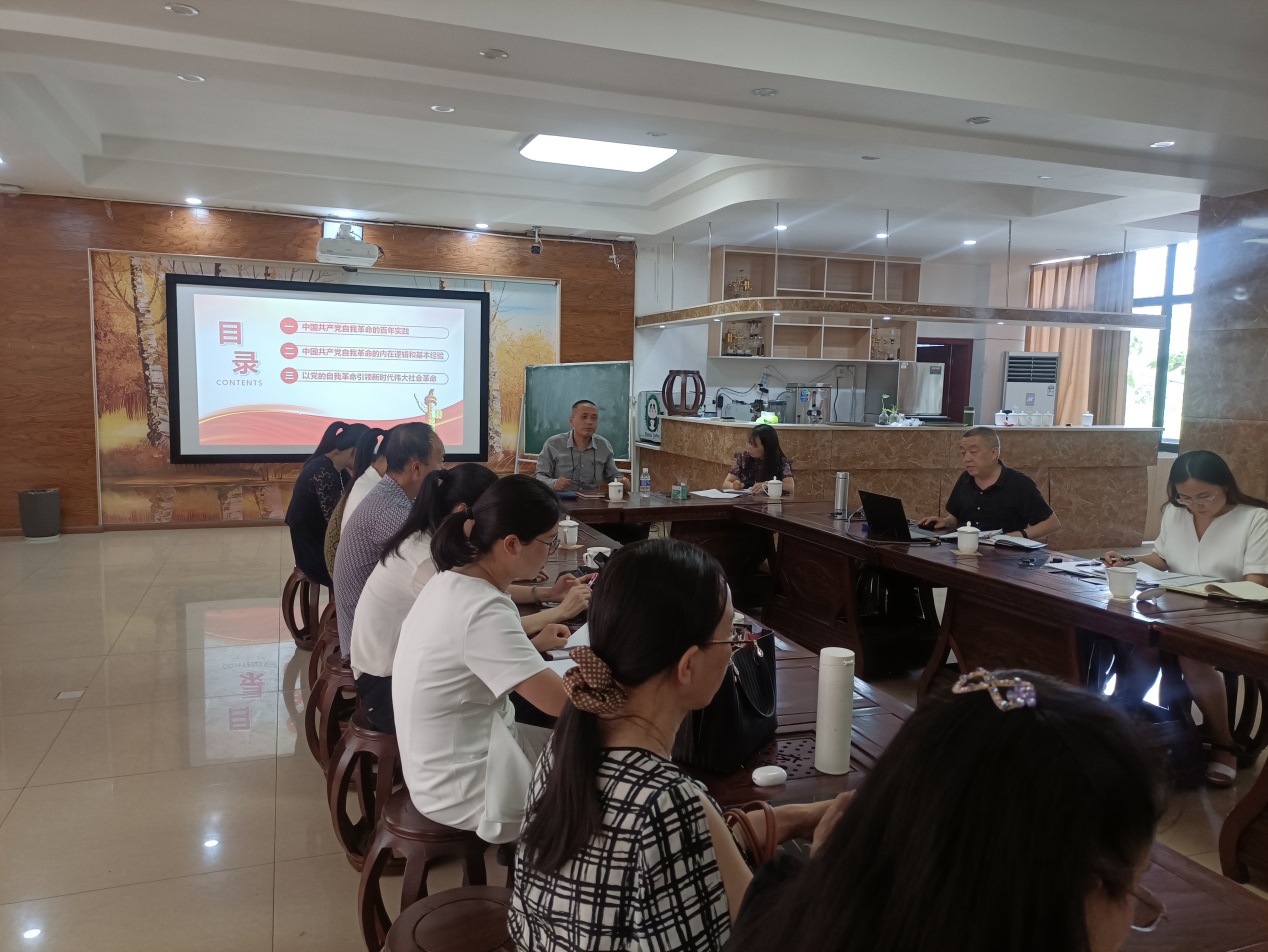 4月20日下午,我院在凌云楼茶艺室开展学习主题教育读书班第一次集中学习。本次读书班由攀枝花学院文学院党总支副书记汪大喹(主持工作)领学,学院全体党员教师参加学习。汪大喹重点围绕“以伟大自我革命引领伟大社会革命”,分别为大家解读了中国共产党自我革命的百年实践、中国共产党自我革命的内在逻辑和基本经验、以党的自我革命引领新时代伟大社会革命。