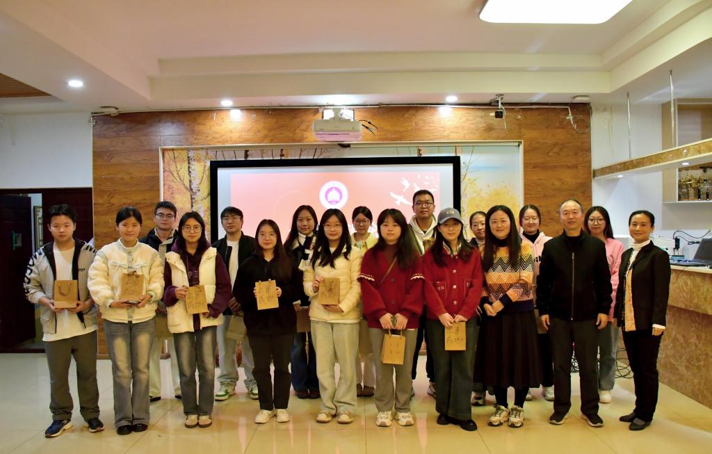 座谈期间,学院还为考研学子送上精心准备的备考慰问品,一份份满载关怀的小礼物,让同学们感受到学院的温暖与期许。分享与交流环节结束后,参会师生共同合影留念,定格这份温暖与奋进的瞬间。