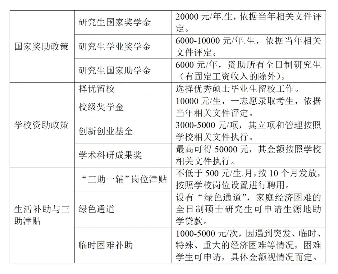 我校拥有完善的研究生资助体系,涵盖国家奖助学金、学校资助政策以及“三助一辅”等补助政策。